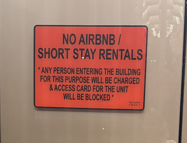 We were also given strict instructions: never show our access card, never tell the guards where we lived, and never carry bags through the lobby. There were signs everywhere saying that Airbnb was forbidden in the building. If we were stopped and our key card was taken, we would be the ones fined, according to our host. That was enough to make me deeply uneasy.