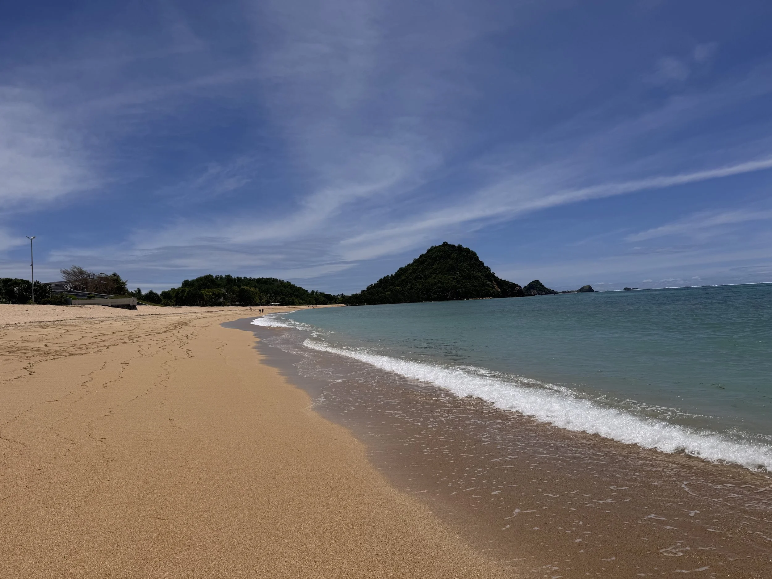 Because Hannes was still recovering, we took things slowly. Walks to the beach, short outings, long pauses. The main beach in Kuta stretches wide and open, framed by hills and softer, rolling landscapes compared to Bali. The town itself feels small, but with a growing pulse.
