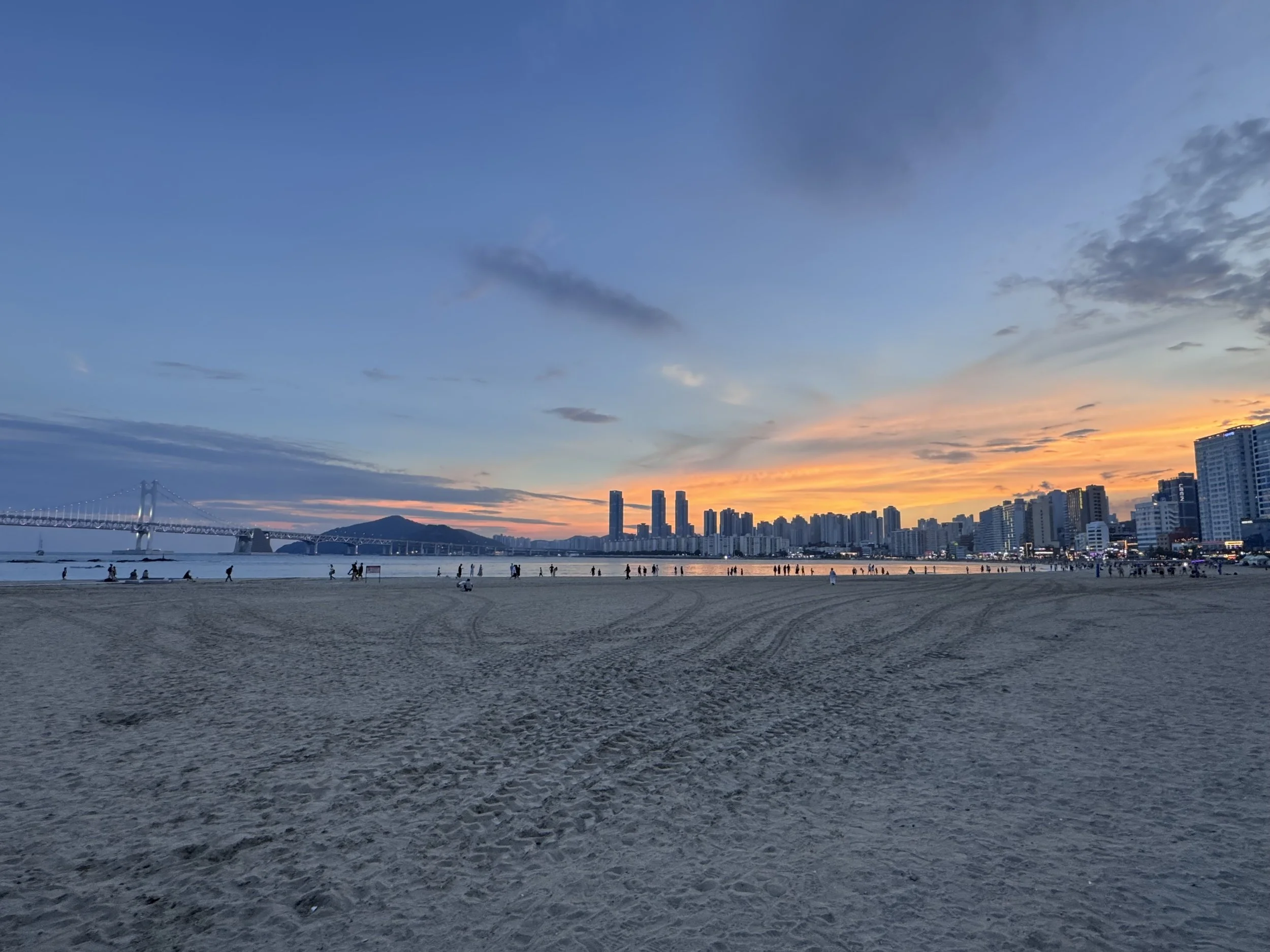 We first stayed in Sinhaeundae, a quieter area outside the center. If we ever come back, I think this is where we’d choose again. Our apartment block there felt like such a luxury after China: several bedrooms, multiple bathrooms, a kitchen, living room, washing machine, and even a balcony! From here, we were close to nature, with space to breathe, and it felt more local and calm. On clear days, we could look out across the water toward Japan — and we learned there are ferries that can get you there in just about an hour.